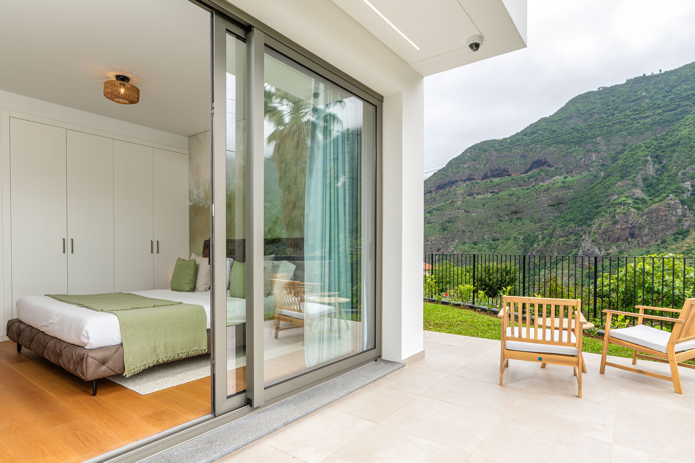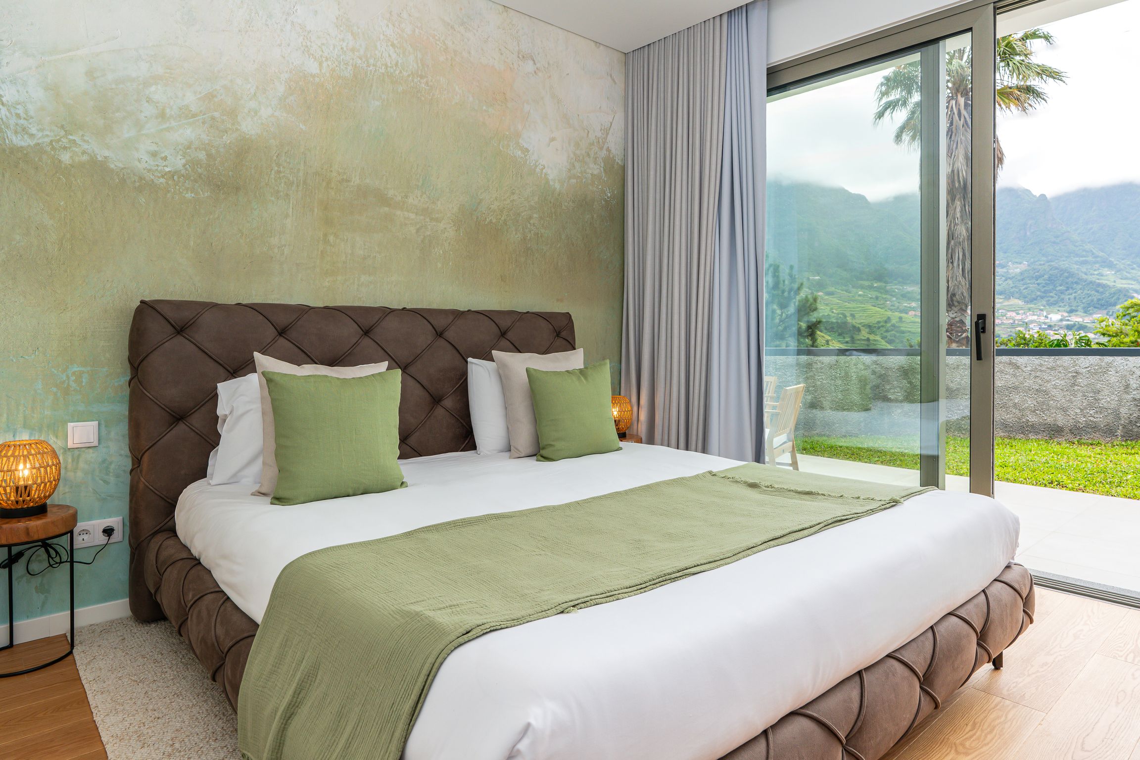Overlooking São Vicente’s green hills, this room blends warmth and simplicity.