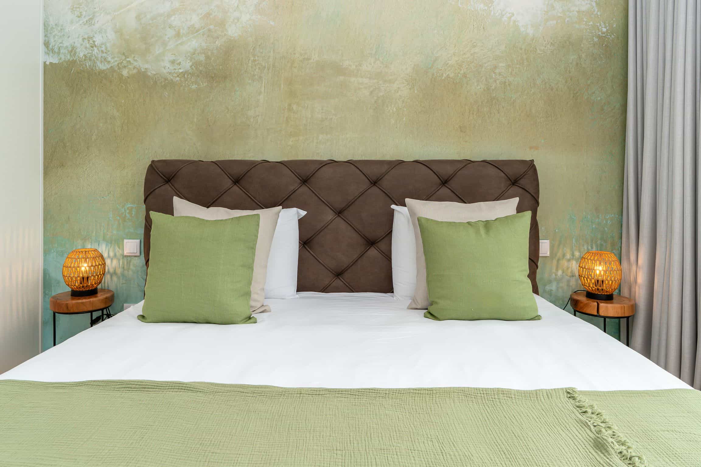 King bed, private bathroom with a walk-in shower, built-in wardrobe and soothing green tones for complete comfort