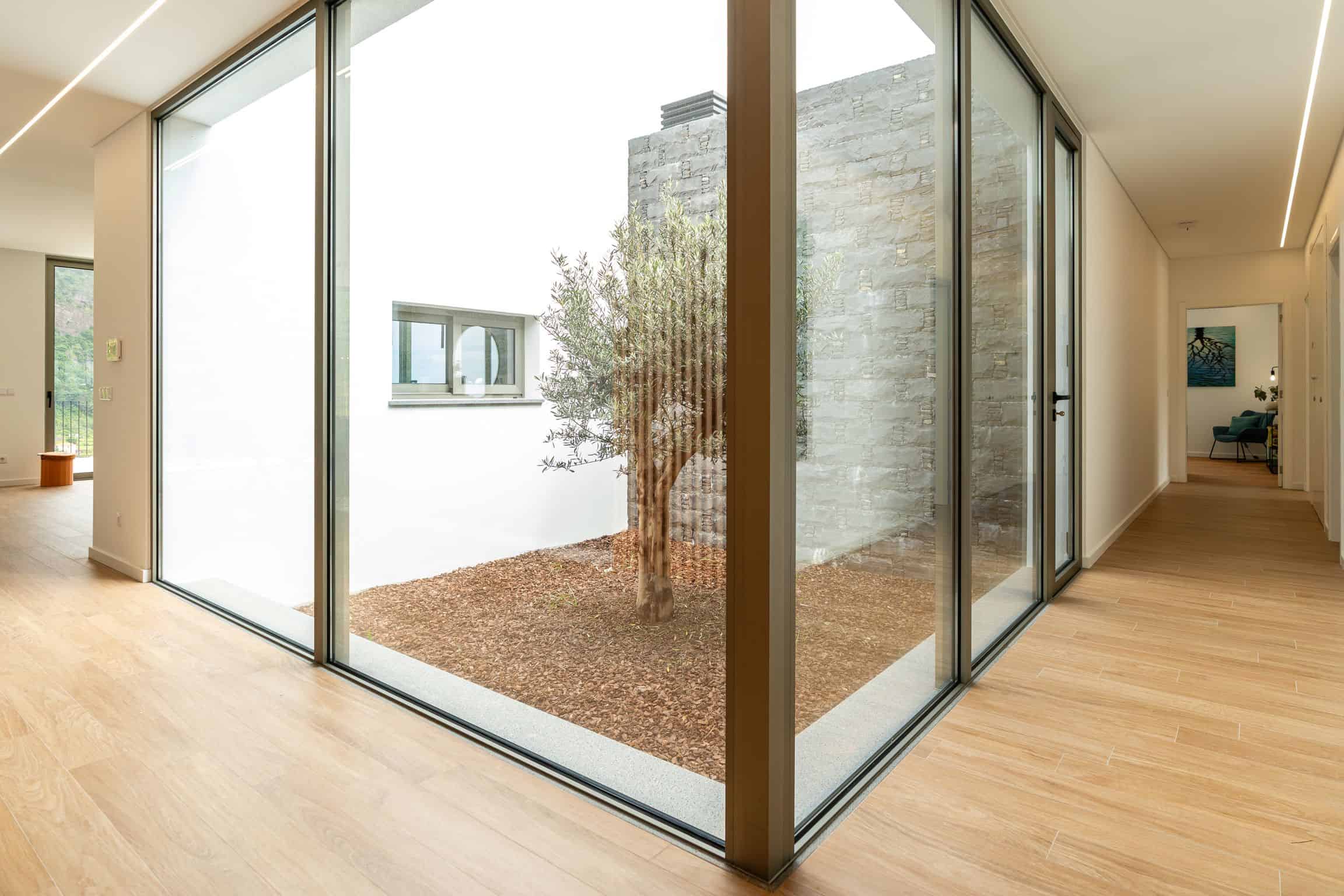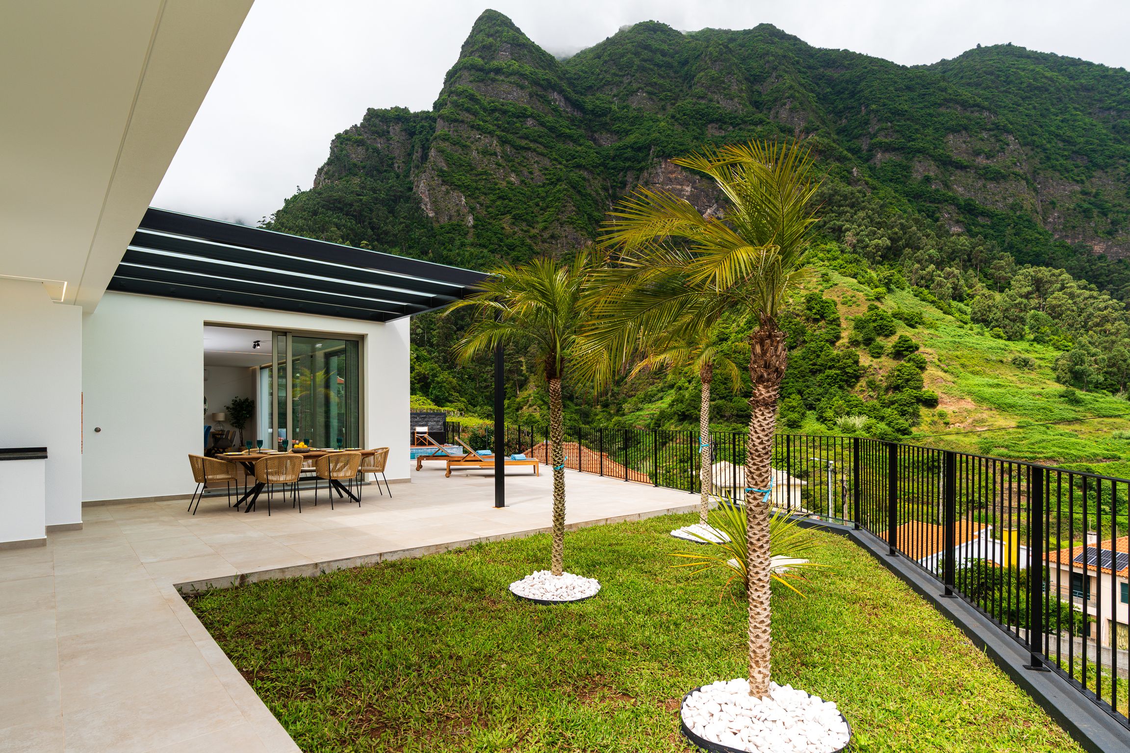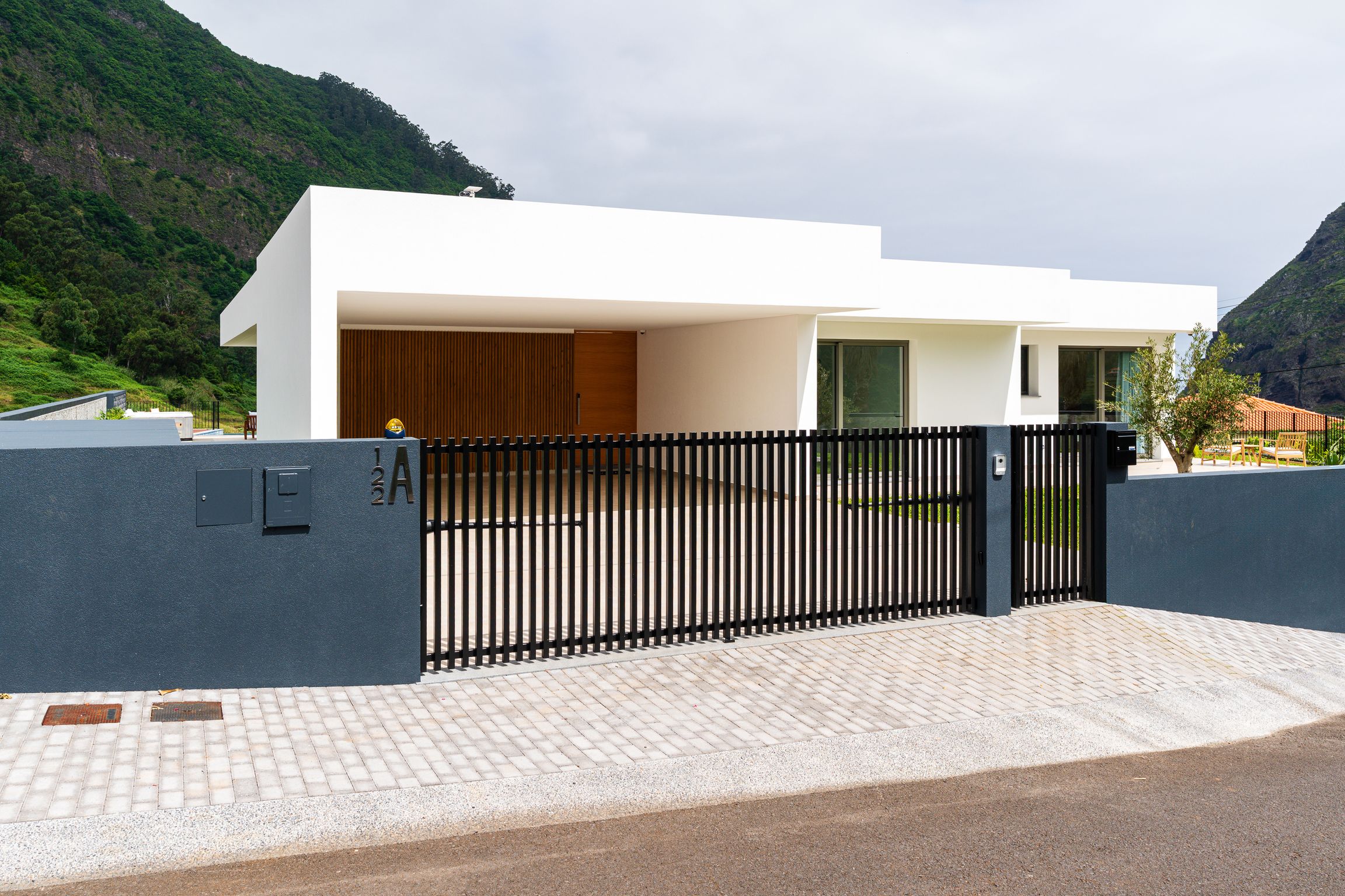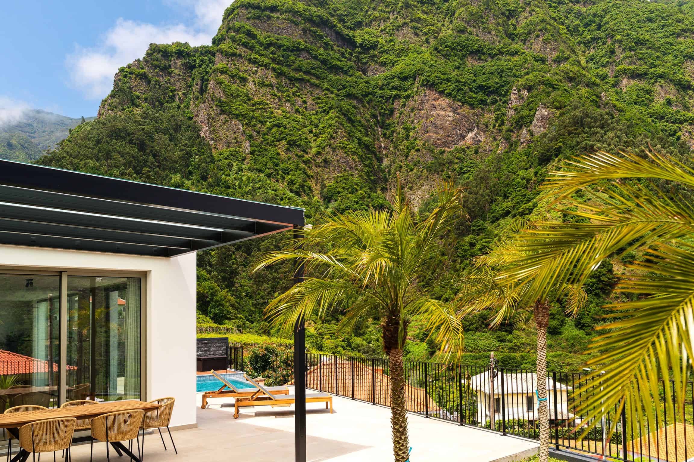 Elysium is situated in the heart of São Vicente lying on the corner of a quiet street with no adjacent neighbors, surrounded by lush hills and stunning ocean views. Only 3 minutes from the nearest supermarket and local amenities for convenience.