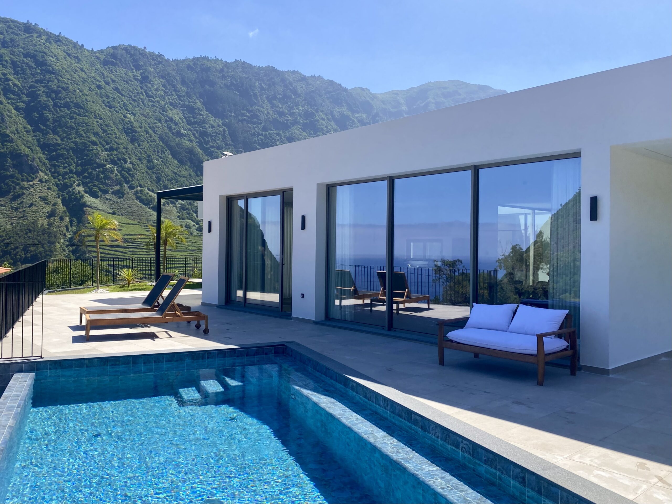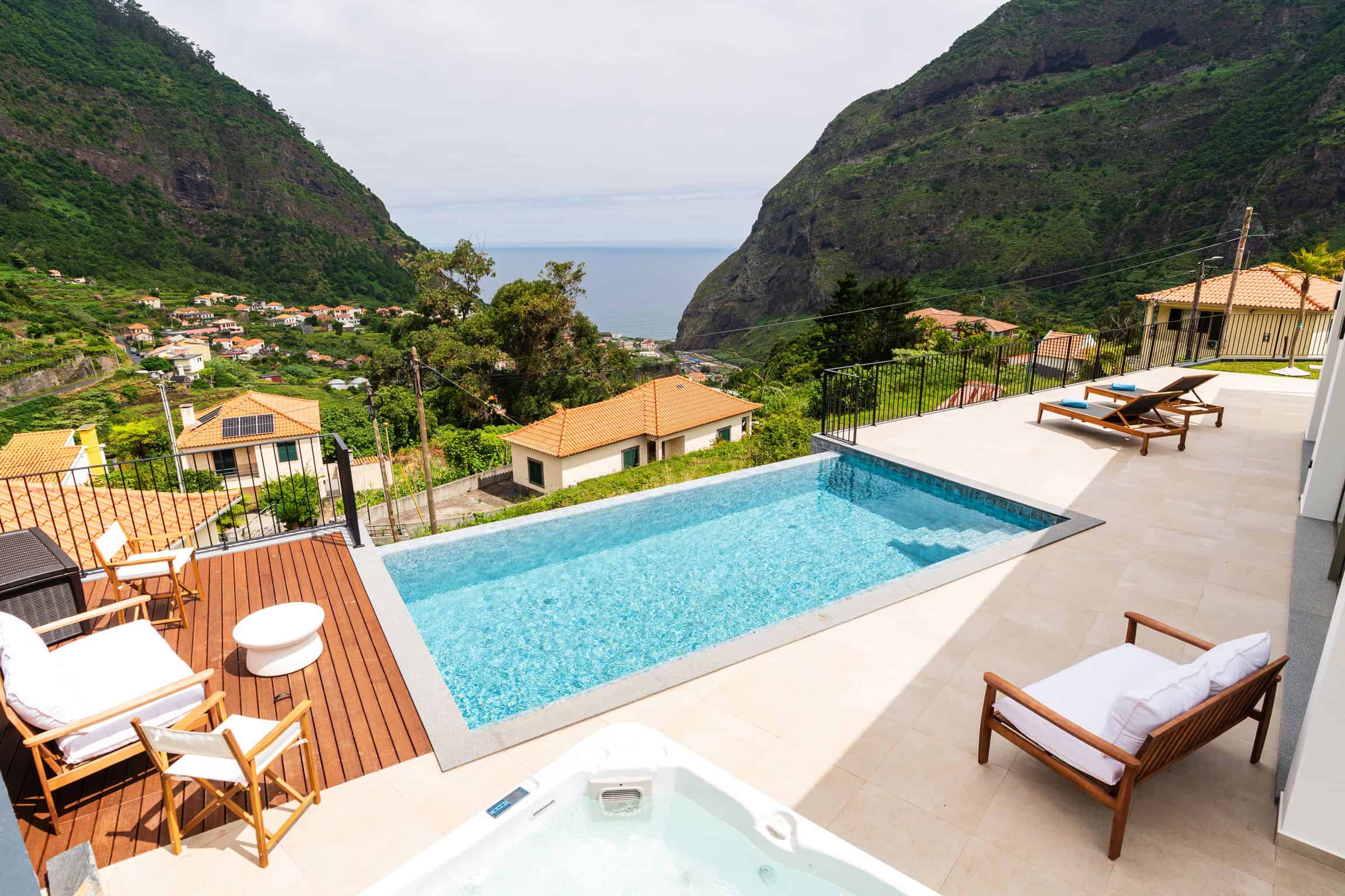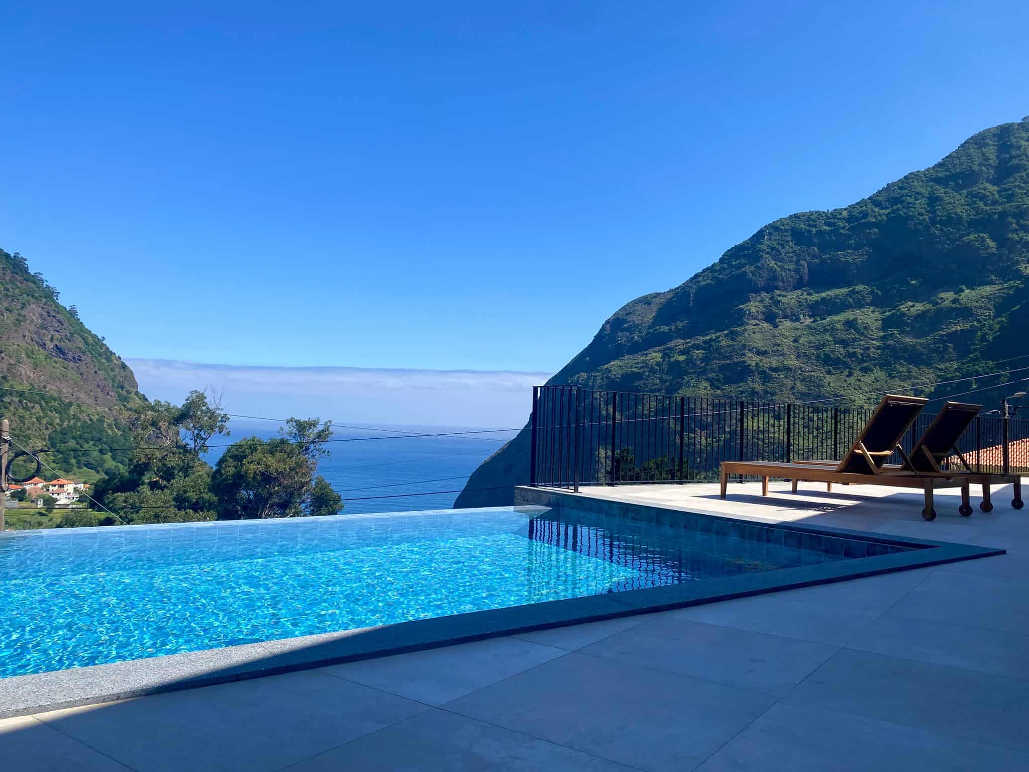 Relax and unwind in our stunning heated infinity pool overlooking the Atlantic Ocean and lush Madeira mountains.