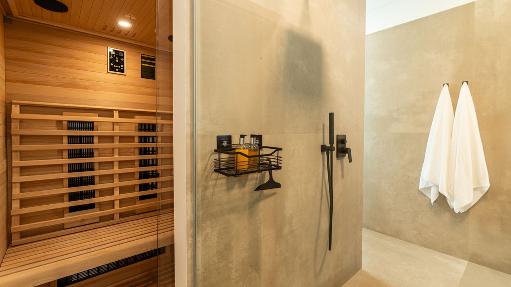 Elysium offers the perfect blend of luxury, comfort, and nature. The villa features three stylish double bedrooms, each with its own en-suite bathroom, while the master suite takes relaxation further with a private sauna and dedicated dressing room.